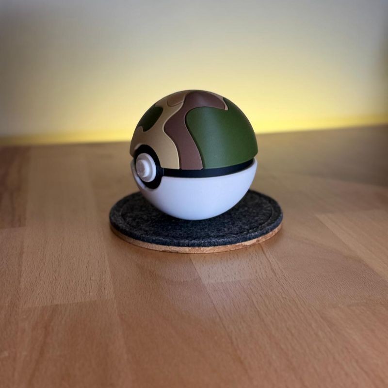 Ajoutez une touche rétro à votre collection avec cette Safari Ball en version 3D ! Inspirée des célèbres zones Safari de l’univers Pokémon, cette Pokéball est imprimée avec soin en PLA de qualité par Farken3DPrint et ravira les fans de la première heure.