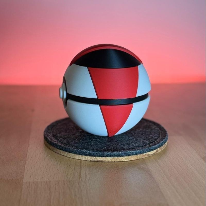 Chrono Ball en Pokéball 3D : une Pokéball liée au temps et à la capture progressive. Création artisanale Farken3DPrint.