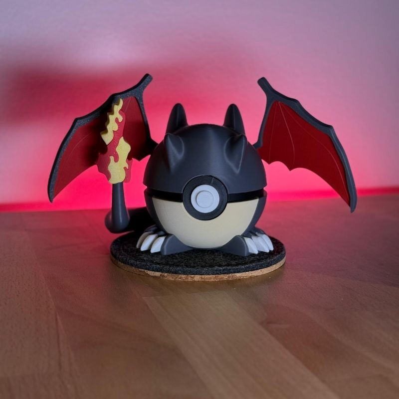 Dracaufeu Shiny en figurine 3D : version noire iconique du Pokémon Feu/Vol. Impression artisanale, finition premium. Pour collectionneurs exigeants.