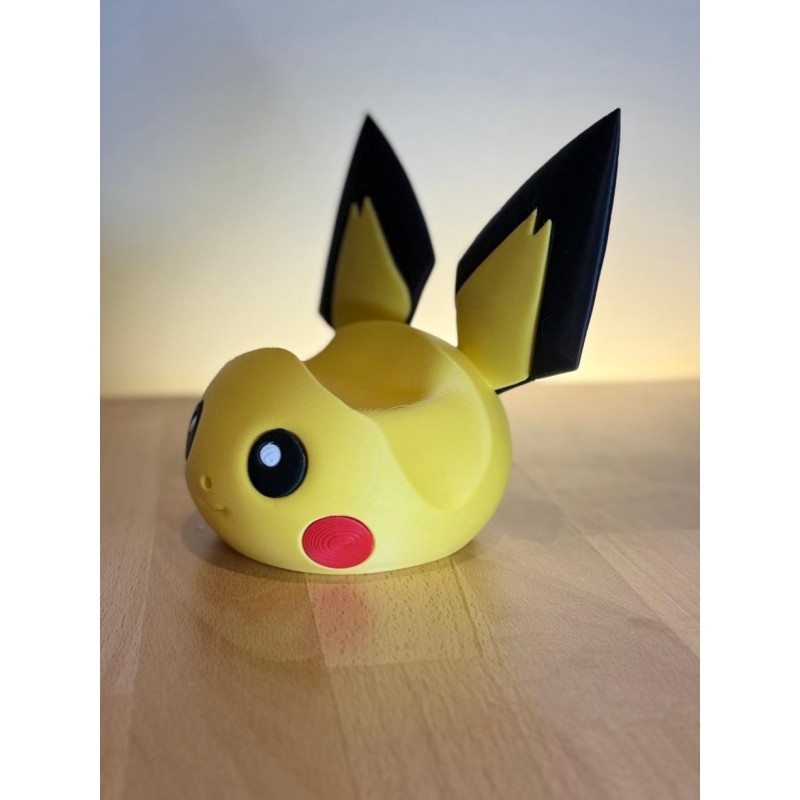 Ajoutez une touche adorable à votre setup gaming avec ce support de manette Pichu imprimé en 3D ! Inspiré du célèbre bébé Pokémon de type Électrik, il est parfait pour ranger et exposer votre manette avec originalité. Design fidèle, finition soignée et fabrication en PLA éco-responsable par Farken3DPrint.