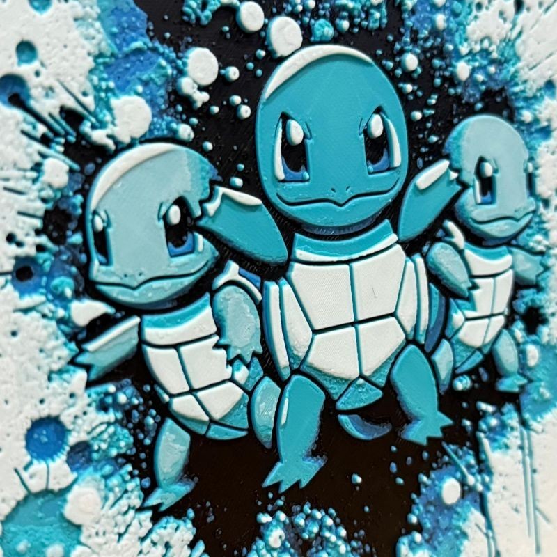 Tableau 3D Carapuce : un portrait mural plein de fraîcheur et d’espièglerie. Reproduction artisanale signée Farken3DPrint.