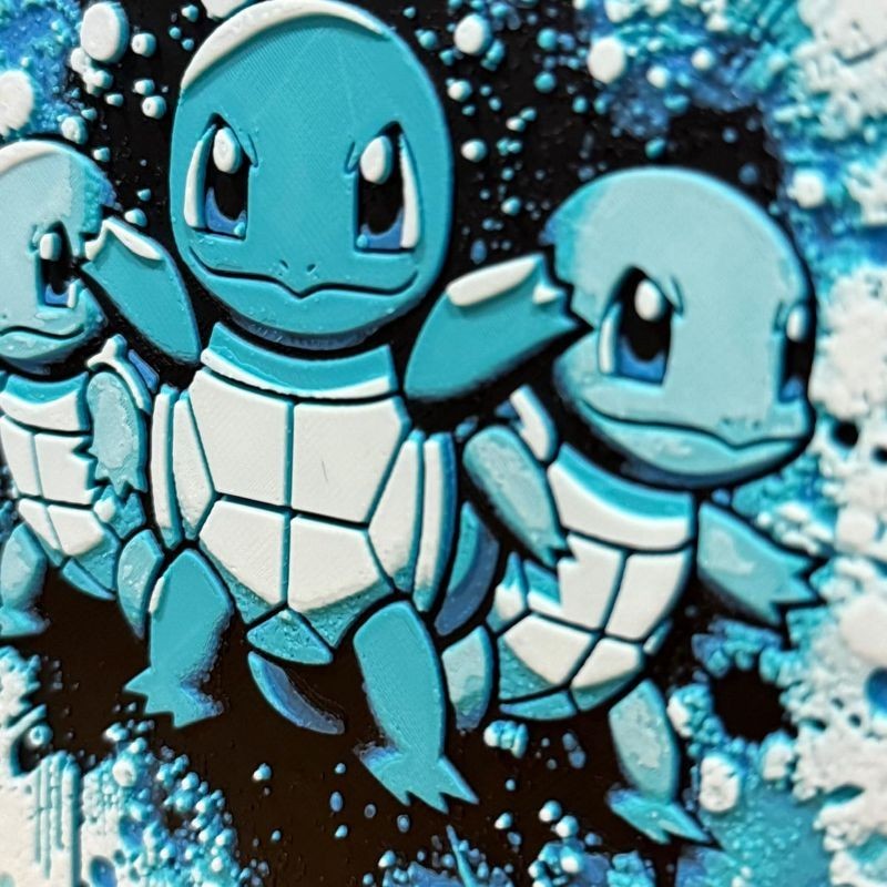 Faites éclabousser votre déco d’une vague de fraîcheur avec ce tableau 3D de Carapuce, le starter Eau iconique de la première génération. Imprimé en PLA de qualité supérieure et monté à la main dans notre atelier Farken3DPrint, ce tableau capte parfaitement son sourire malicieux et sa carapace brillante. Un classique indémodable à afficher fièrement.