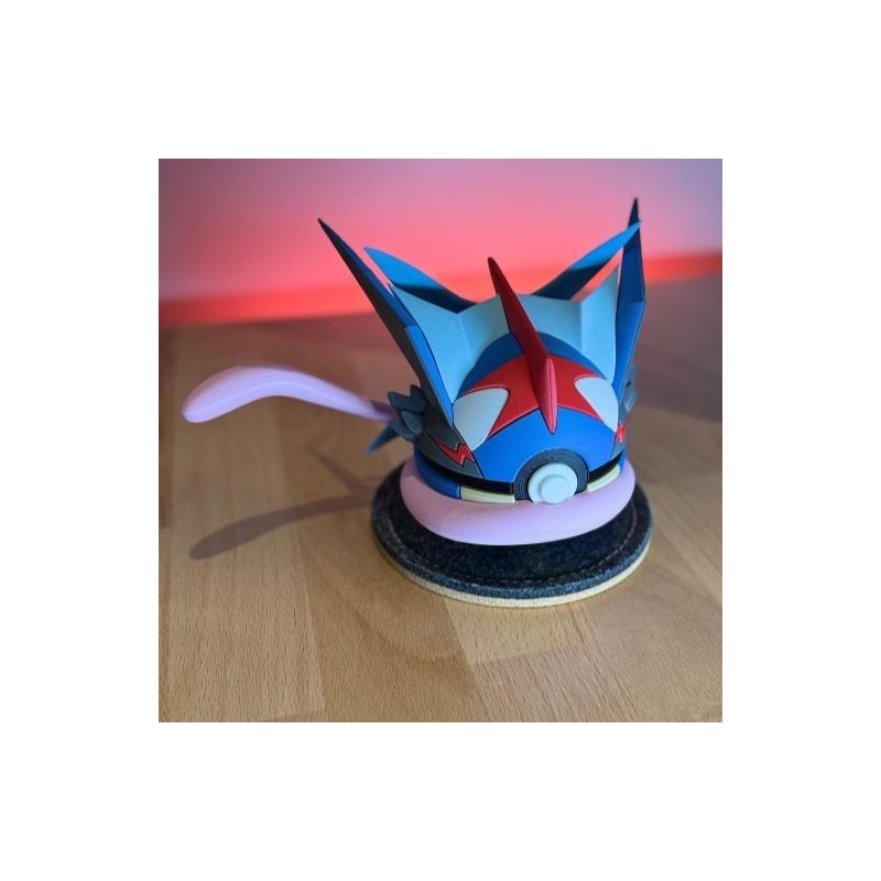 Amphinobi (Sacha) en figurine 3D : la forme spéciale du Pokémon Eau et Ténèbres, inspirée de l’anime. Création artisanale Farken3DPrint.